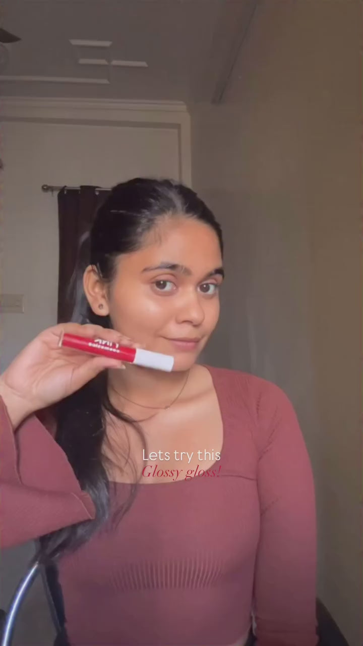 Crafted with 100% natural ingredients, this gloss offers a lightweight, non-sticky formula that glides on effortlessly. Whether worn alone for a striking burst of cherry-red shine or layered over lipstick for added intensity, Shade Cherry Bomb combines bold beauty with gentle care.